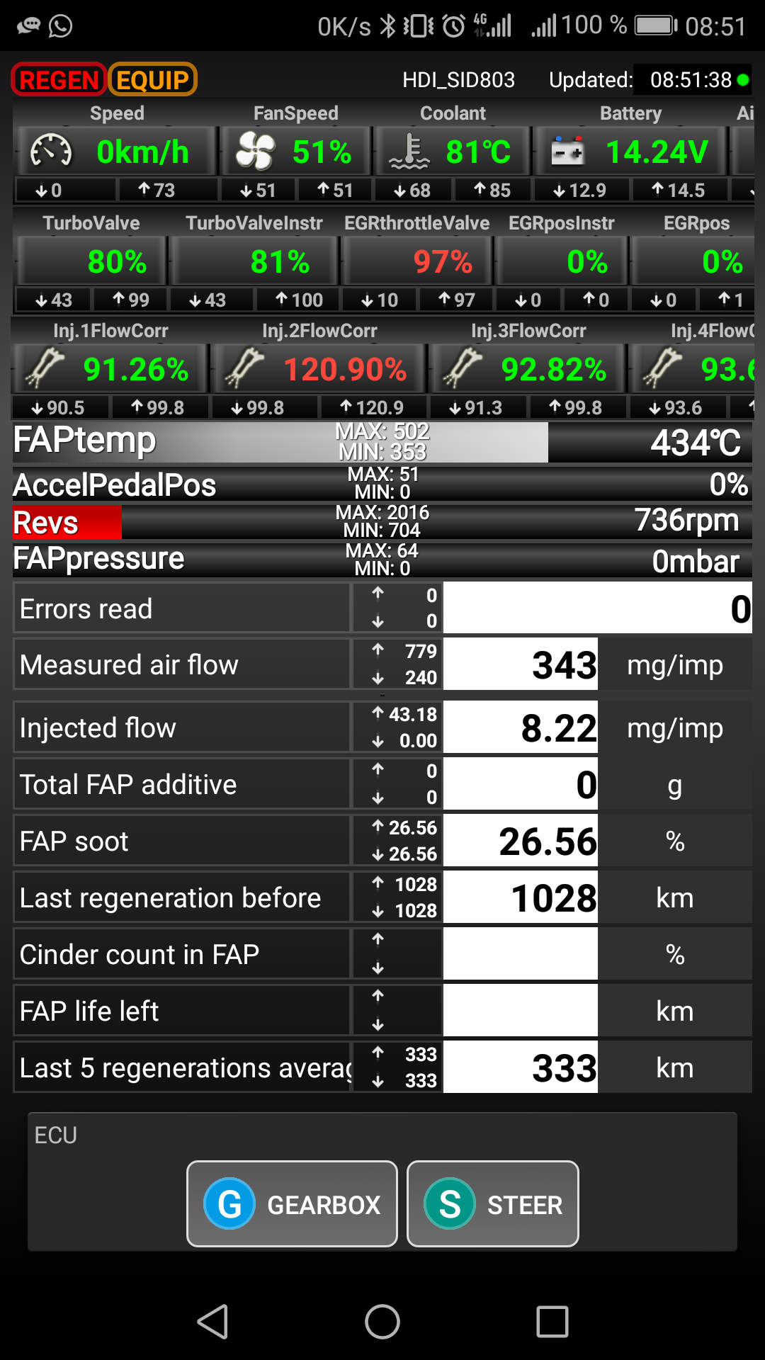Kennt sich jemand mit diesem Thema aus? Nachdem mein Dieselrußpartikelfilter bei meinem 508 Blue HDI 150 nach 102TKM gereinigt werden musste wollte ich mir mal ein genaueres Bild von der Regeneration machen. Da ich überwiegend Kurzstrecken fahre was nicht optimal ist. Ich habe mir die Torque Pro App gekauft und einen OBDII Adapter. Die App funktioniert ganz gut aber leider fehlen mir einige interessante DPF Werte die man durch sogenannte PIDs abfragen kann. Hat jemand vielleicht diese Peugeot spezifischen PIDs zur Abfrage des DPF Status. Ich kann bis jetzt die DPF Temperatur und den Differenzdruck auslesen. Schön wäre noch die Russbeladung zu wissen.