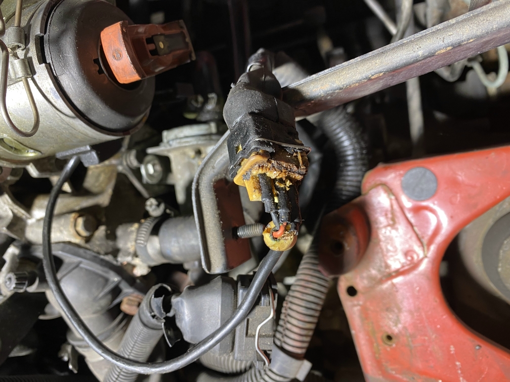 Habe gestern Abend angefangen den Stecker zu suchen und bin auf einen völlig maroden 3-poligen Stecker gestoßen, welcher zum Zündverteiler geht.