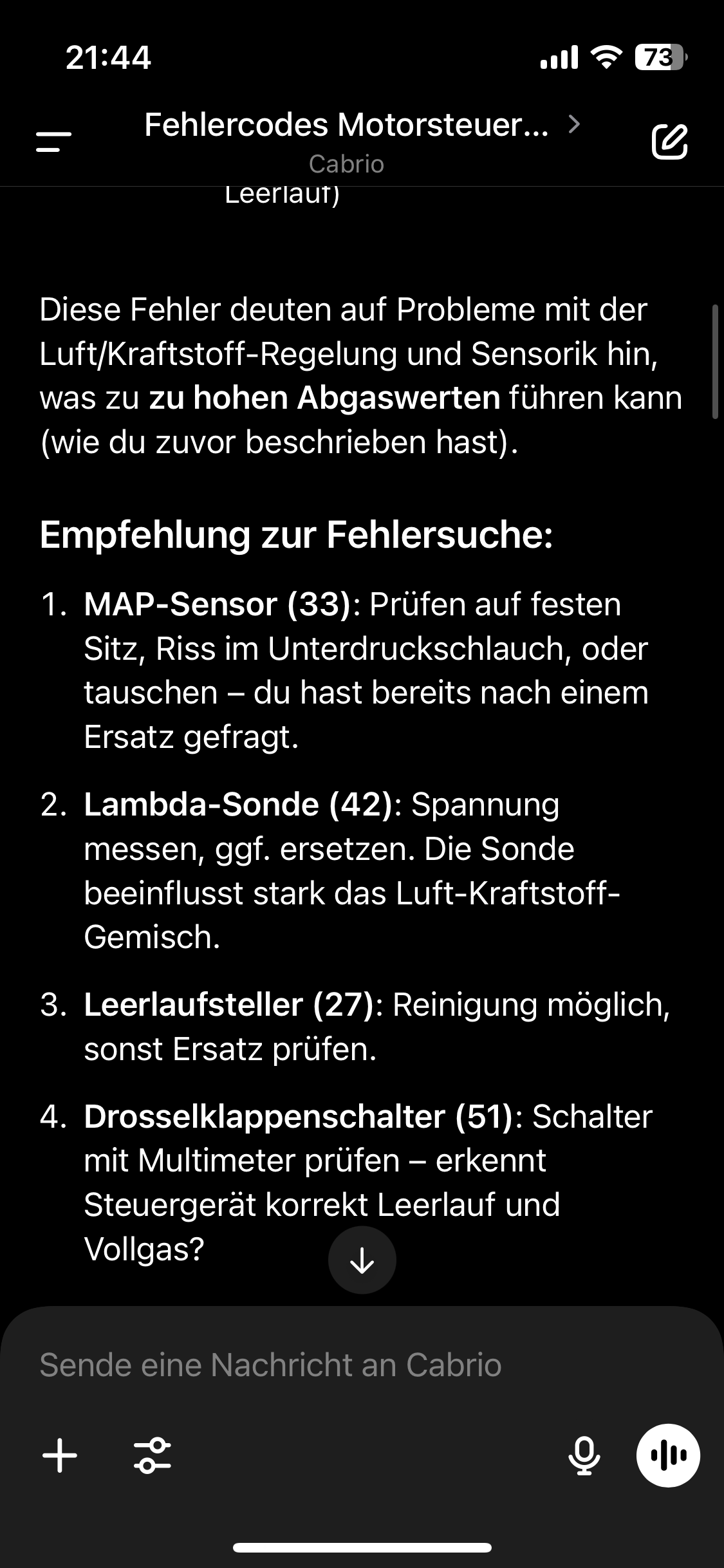 In der Eile (2h vor Abgas-Termin) noch einmal ChatGPT befragt „Bist du dir wirklich sicher, dass Fehler 27 den Leerlaufregler betrifft?“