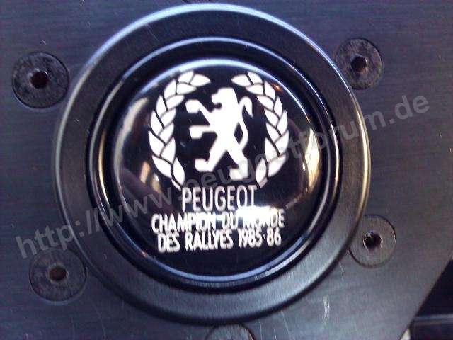 Original Peugeot Zubehoer Momo Lenkrad mit Rallye Champion Hupknopf
