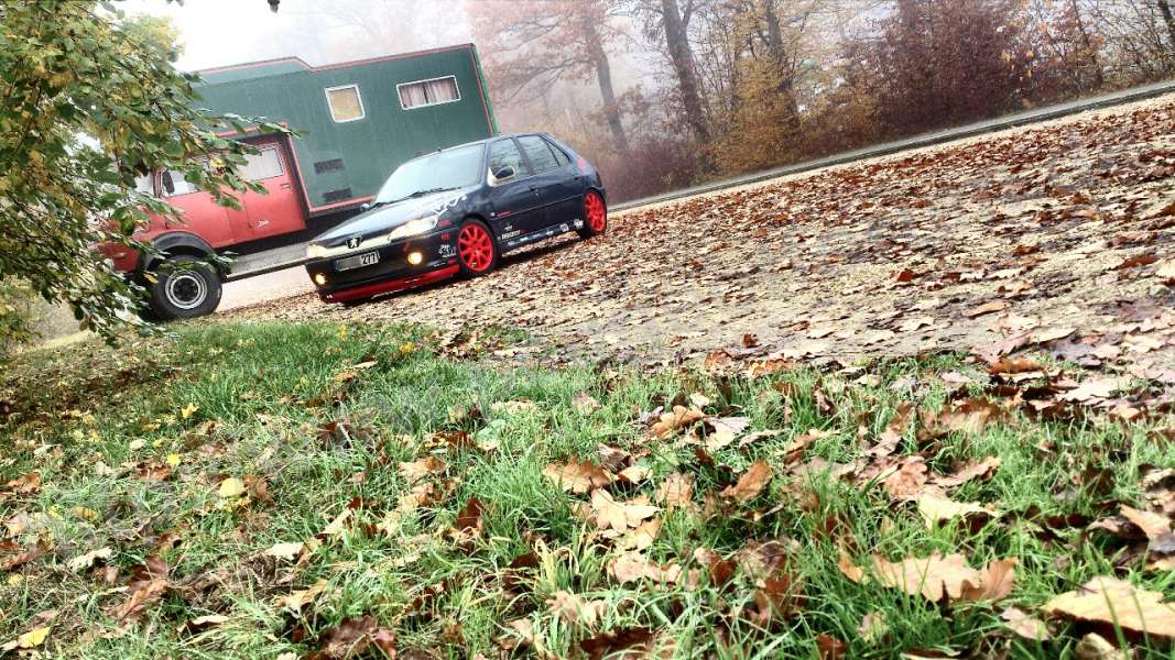 * Renault Espace Lippe in rot, Heckspoiler in weiss vom S16, Spiegel, weiss lackiert, Kuehlergrill weiss lackiert